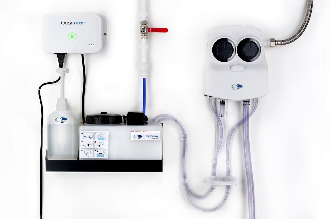 Toucan Eco Active Plus is suitable for medium sized facilities and one activation, which takes around 40 minutes, produces 5 litres of disinfectant cleaner, which can be poured into bottles or buckets using either of the dilution dispensers.